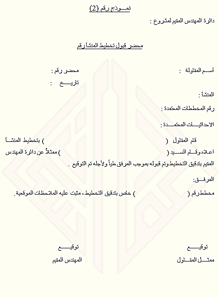 نموذج رقم 2 – محضر قبول تخطيط المنشأ رقم