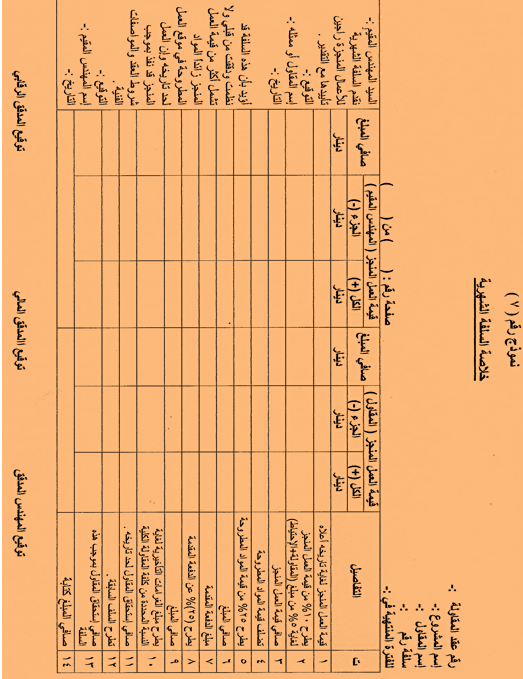 نموذج رقم ( 7 ) – خلاصة السلفة الشهرية