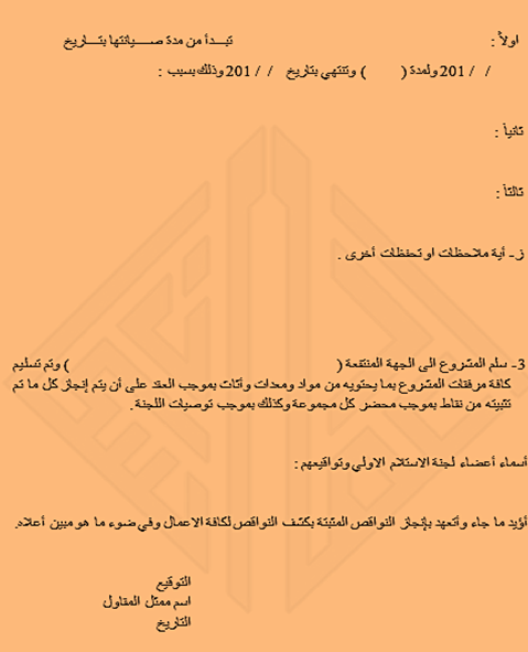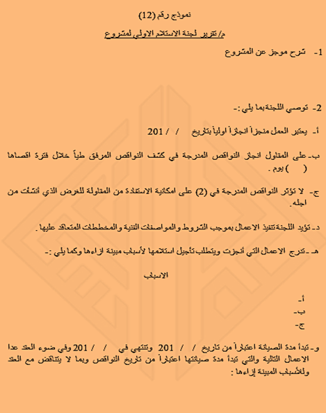 نموذج رقم ( 12 ) – تقرير لجنة الاستلام الاولي للمشروع