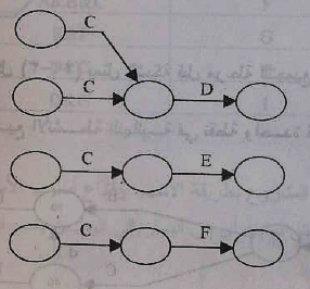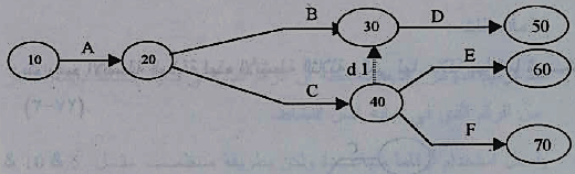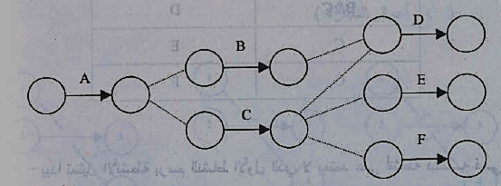 3- يتم تعديل الرسم بالغاء الأنشطة المتكررة مثل النشاط C حتى لو اضطر المخطط إلى استخدام أنشطة وهمية كما في شكل 8 :