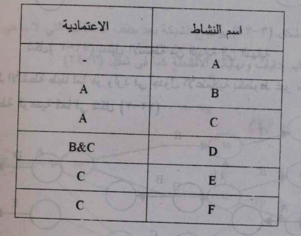 شكل 6 تمثيل الانشطة من النهاية الى البداية