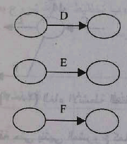 3- حذف خطوط العلاقات التي ليس لها حاجة، وذلك بطرح السؤال التالي: لو تم إلغاء هذا الخط المنقطع وجمع بداية النشاط التالي مع نهاية النشاط السابق هل تتغير الاعتمادية فإذا كانت الإجابة بالنفي فيمكن إلغاء هذا الخط وإذا كانت الإجابة بنعم فيبقي هذا الخط ويعتبر نشاط وهمي ويعطى له اسم وبالتالي ينتج التخطيط المبين في شكل 3 :