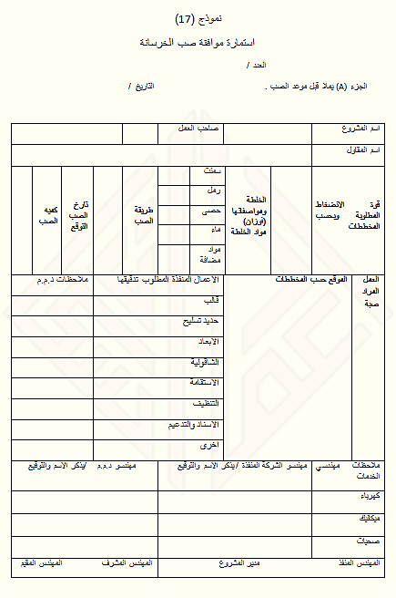 نموذج رقم ( 17 ) – استمارة موافقة صب الخرسانة