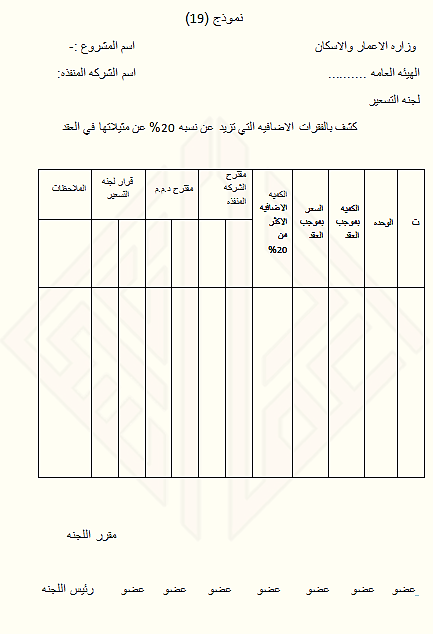 نموذج رقم ( 19 ) – كشف بالفقرات الاضافية التي تزيد عن نسبة 20 % عن مثيلاتها في العقد