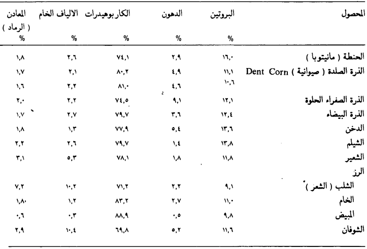 جدول يبين التركيب الكيمياوي العام للحبوب محسوباً على أساس الوزن الجاف (السعيدي)
