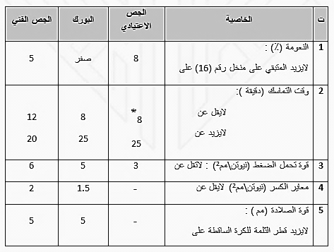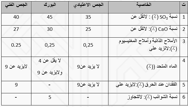 جدول (2) : المتطلبات الكيميائية