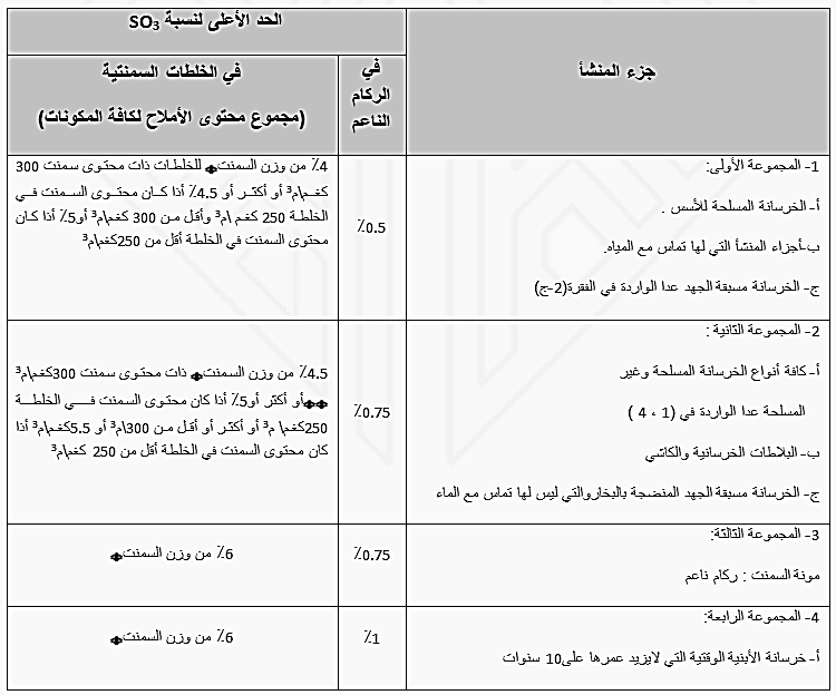 - لا تزيد نسبة SO3 في الركام الخشن على 0.1٪ وزناً .