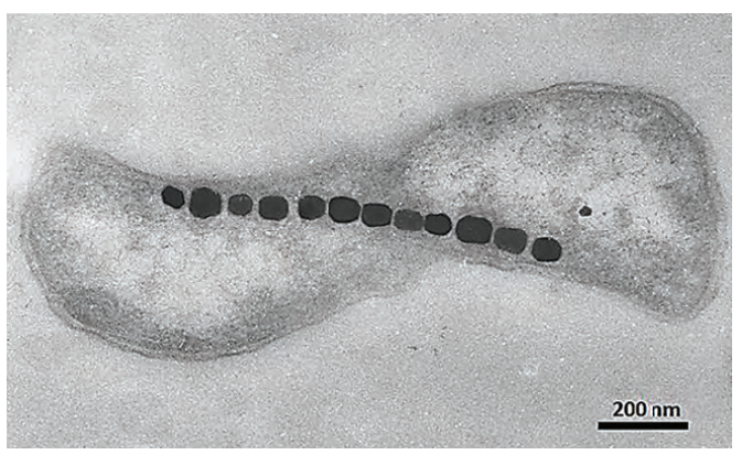 شكل 11-2: بكتيريا ممغنطة تحتوي على الاجسام المغناطيسية. عن: https://images.app.goo.gl/cs4J72RvcWDX59rz6