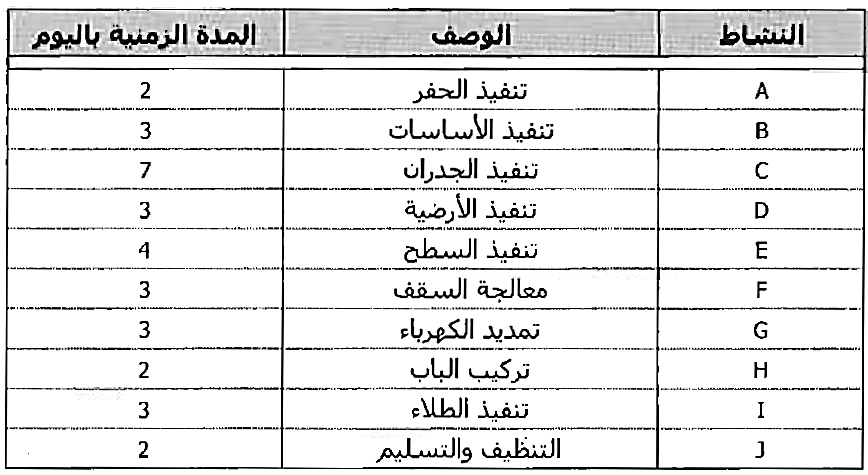 حيث تمثل الاحرف اسماء الانشطة كما يلي :