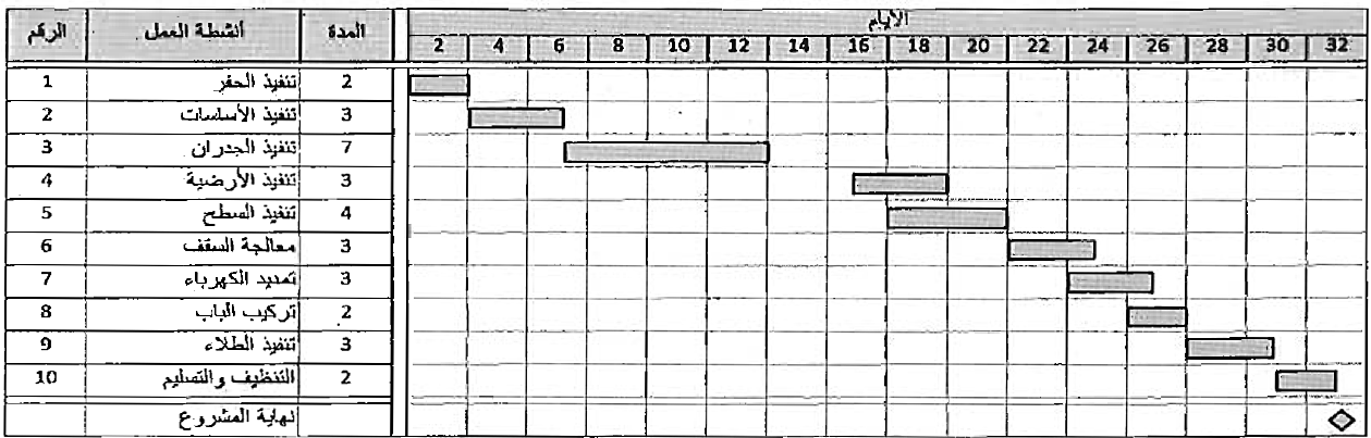 يمثل المشروع باستخدام المخطط الشريطي ، حيث يظهر البرنامج التخطيطي في الشكل (2).