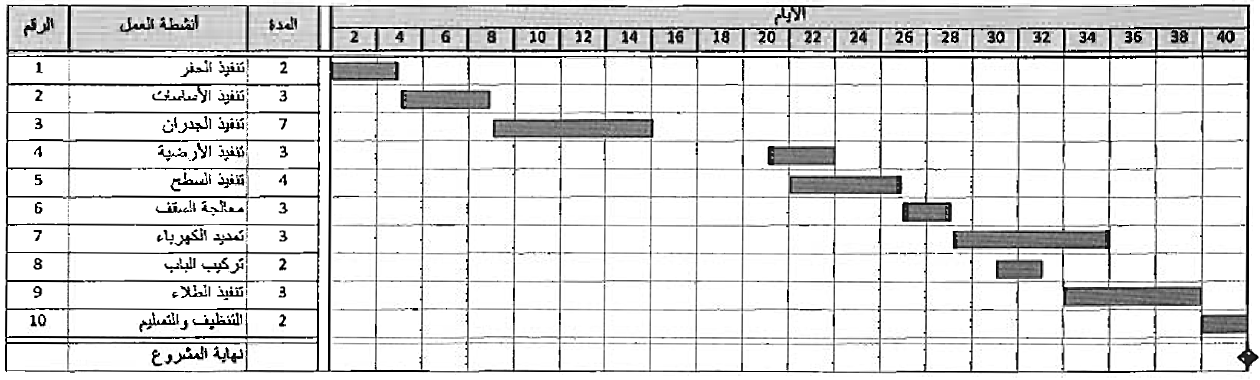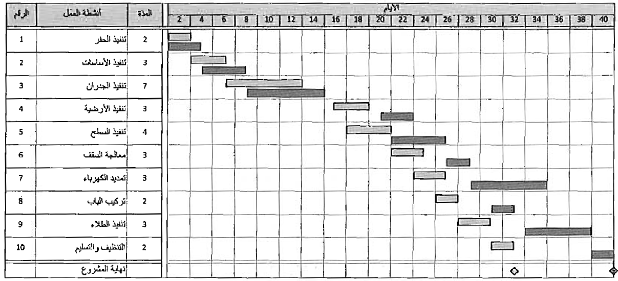 شكل (2) الجدولة الزمنية التخطيطية (المخطط الشريطي) لمشروع بناء المراب،