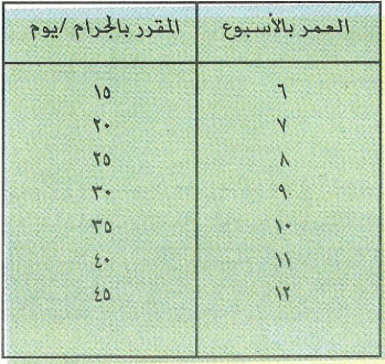 من الملاحظ ان المقرر يزيد كل اسبوع بمعدل خمسة جرامات.