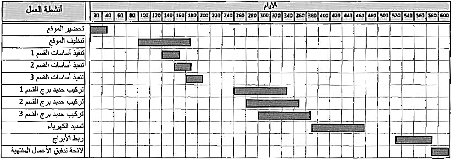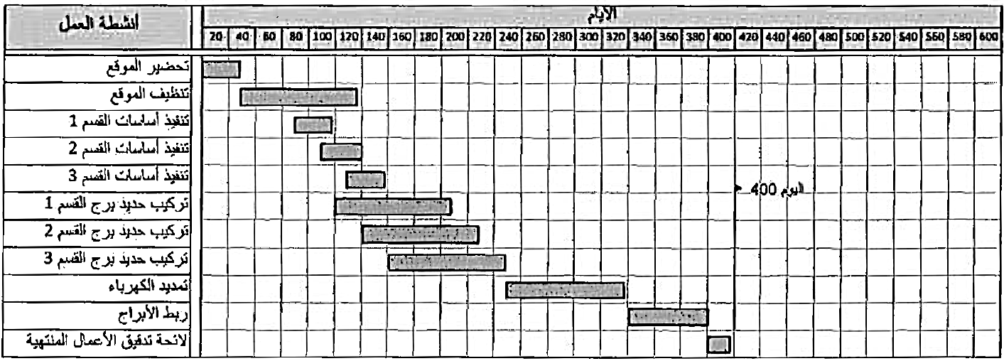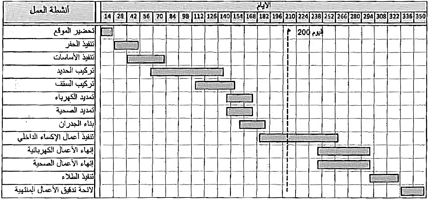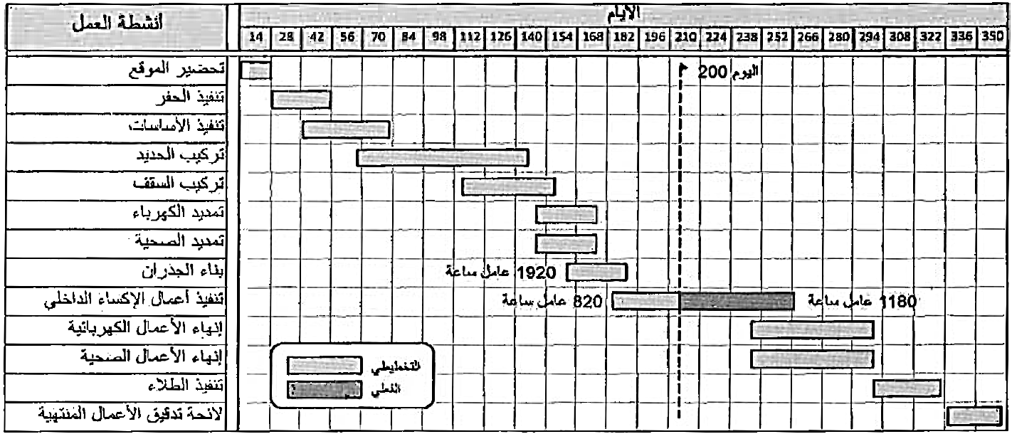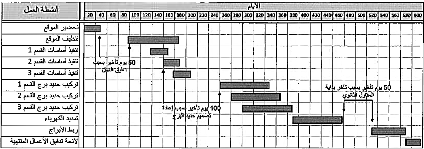 شكل (5) المخطط الشريطي الفعلي مع التأخيرات.