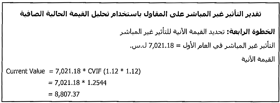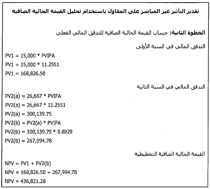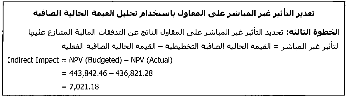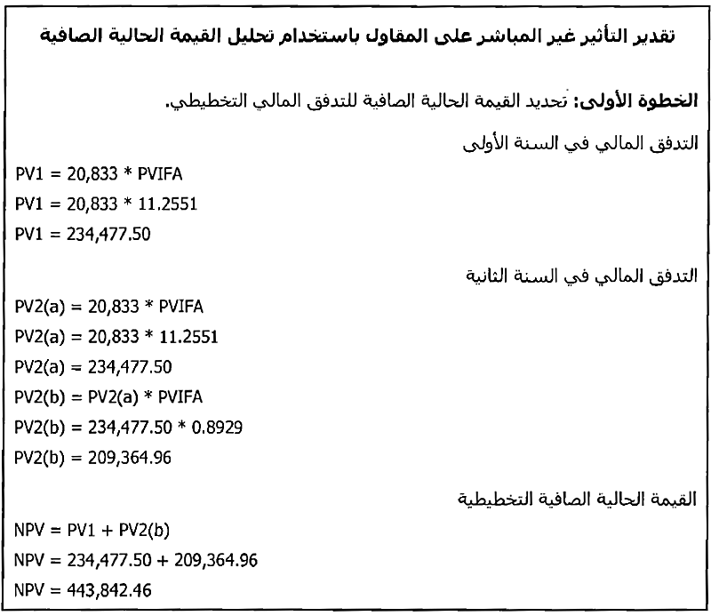 مثال (3) التأثير غير المباشر على المقاول باستخدام تحليل القيمة الحالية الصافية.