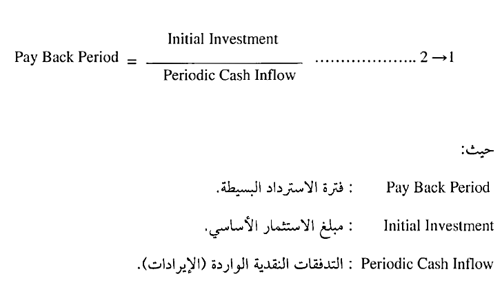 نماذج اختيار المشروع - النماذج الكمية – نموذج فترة الاسترداد البسيطة