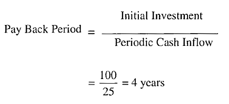 ويطلق عليه البعض اسم نموذج نقطة التعادل Break Even Model، وعن طريق هذا النموذج يتم احتساب الفترة الزمنية اللازمة لاسترداد مبلغ الاستثمار الأساسي المدفوع في المشروع، وبعدها يتم اختيار المشروع الذي لـه أقـل فترة استرداد. ويتم حساب فترة الاسترداد باستخدام القانون الرياضي التالي: