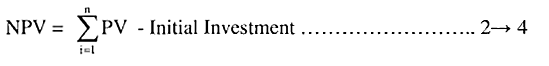 • بعدها يتم طرح مبلغ الاستثمار الأساسي من مجموع القيمة الحالية للتدفقات المستقبلية، والناتج يسمى صافي القيمة الحالية (Net Present Value (NPV