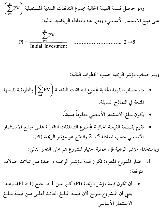 نماذج اختيار المشروع - النماذج الكمية – نموذج مؤشر الربحية