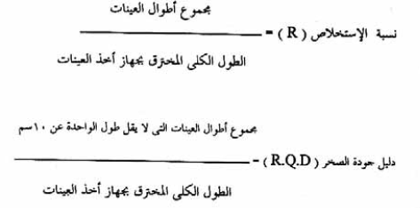 وتتحدد جودة الطبقة الصخرية حسب نسبة الإستخلاص Recovery ) R ) ودليل جودة الصخر ) Rock Quality Designation R.Q.D) ويعرفان كالاتي :