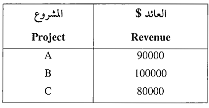 الحل : سيقوم المستثمر في استثمار المبلغ في مشروع B لأنه يحقق أعلى ربح .