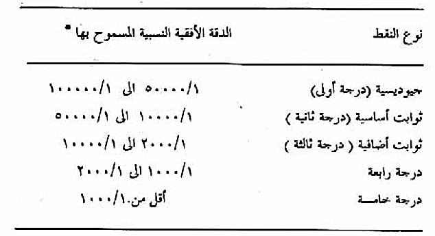 جدول رقم (1) النقط المساحية والدقة الأفقية النسبية المسموح بها