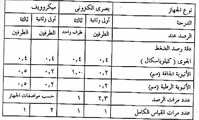 ( هـ - 4) فى حالة القياس بأجهزة قياس المسافات الإلكترونية يجب أخذ أرصاد جوية ( الضغط الجوي - الرطوبة - درجة الحرارة ( حسب ما هو موضح في الجدول رقم 5) وعمل التصحيحات اللازمة للمسافات المقاسة .
