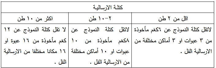 يتم اخذ النماذج وفق متطلبات الجدول رقم ( 6-4 ) .