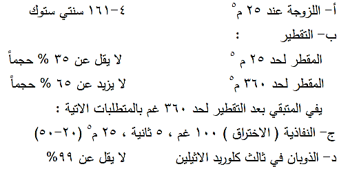 تطابق خواص قير الاساس الذي يجب ان يكون متجانساً وخال من الماء المتطلبات الواردة في المواصفة