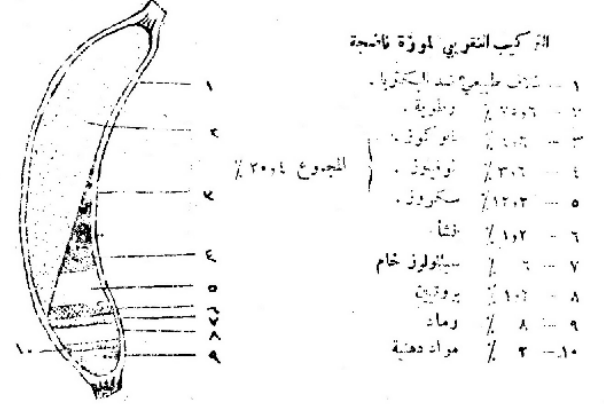 تحوي ثمار الموز الناضجة الطازجة على المكونات التالية مقدرة على أساس 100 غرام من الثمار.