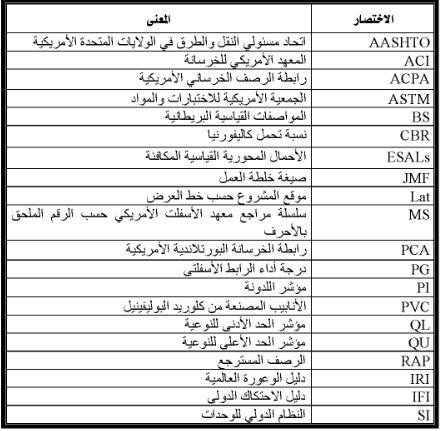 حيثما وردت الاختصارات التالية في المواصفات او في المخططات فإنها يجب ان تعطى نفس المدلول المبين امام كل منها: