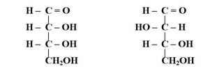 وإذا بدأنا من المركب L Glyceric- وبنينا عليه بنفس الطريقة أعلاه Cyanohydrin نحصل على السكريات التي تعتبر متناظرات ضوئية أو صورة مرآة للمركبات السكرية ) Glyceric Aldehyde - D) .