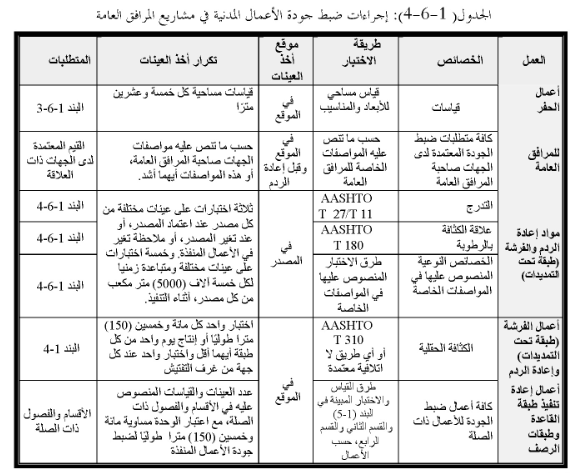 يتم قياس كميات الحفر واعادة الردم واعمال طبقة القاعدة والطبقات الركامية والطبقات الاسفلتية وفق ما هو منصوص عليه في الاقسام ذات الصلة من هذه المواصفات العامة ما لم تنص المواصفات الخاصة على خلاف ذلك، ويتم قياس اعمال المرافق العامة حسب ما تنص عليه المواصفات الخاصة او ما هو معتمد لدى الجهات صاحبة المرافق العامة.