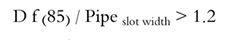 يجب ان يكون ناتج قسمة مقاس المنخل الذي يمر منه خمسة وثمانون (85) بالمائة من . مادة المرشح حول الانابيب (Df(85 على عرض شقوق التصريف في الانابيب Pipe slot width اكبر من واحد واثنين بالعشرة (1.2) للأنابيب التي تنفذ فتحاتها على شكل شقوق حسب العلاقة التالية: