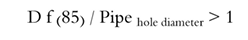 كما يجب ان يكون ناتج قسمة مقاس المنخل الذي يمر منه خمسة وثمانون ( 85 (بالمائة مــن مــادة المرشح حول الانابيب (85)DF على قطر ثقوب التصريف في الانبوب Pipe hole diameter اكبر من الواحد، حسب العلاقة التالية: