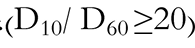 2- يجب ان يكون ناتج قسمة مقاس المنخل الذي يمر منه خمسون (50) بالمائة من المادة المرشحة الى مقاس المنخل الذي يمر منه خمسون ( 50 ) بالمائة من التربة المحيطة اقل او تساوي خمسة وعشرين (25).