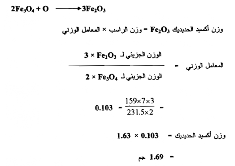 إنه لمن الضروري أن يفترض بأن كل Fe في Fe2O4 قد تحول الي Fe2O3 وإن كمية الأوكسجين متوفرة لغرض الحصول على التغيير