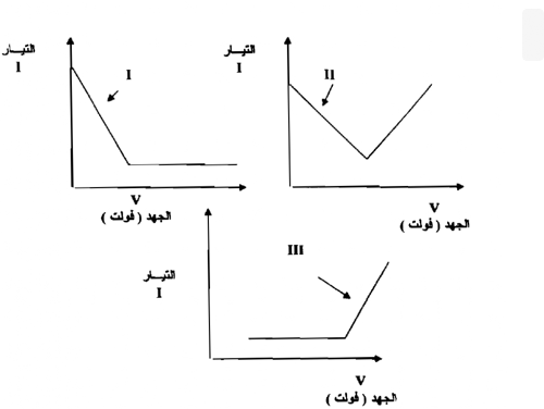 ثانياً : يتضاءل التيار الإنتشاري أثناء إضافة الكاشف إلى المحلول المدروس ثم يزداد من جديد بعد أن يبلغ قيمة صغري عند نقطة التكافؤ . ونحصل على منحني من هذا النوع شكل ( II ) أثناء معايرة محلول يحتوي على أيونات الرصاص مع محلول البيكاربونات .
