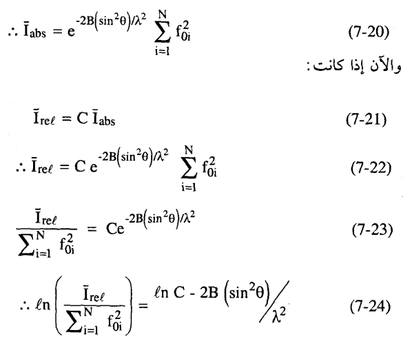 أما المشكلة الثانية وهي الأخطر فهي أن قيم f's اللازمة للمعادلة (18-7) هي تلك القيم التي تصف الذرات كما هي في البلورة أي أنها تتذبذب بفعل الحرارة ولذلك يجب أن تتحد المعادلتان (17-7)، (18-7).
