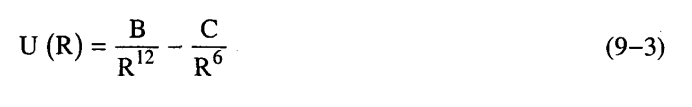 وتشير الحسابات النظرية للغازات الخاملة إلى أن جهد التنافر قد يأخذ، الصورة؛ B/R12، حيث B مقدار ثابت موجب، وعلى ذلك، فإن طاقة الوضع الكلية لذرتين تفصلهما مسافة R تصبح ...