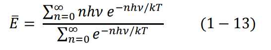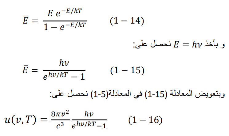 في عام 1900، أتى ماكس بلانك ليجيب على هذا السؤال؟ لقد اكتشف بلانك أن الخطأ يكمن في استخدام رايلي وجينز متوسط الطاقة الكلية من المعادلة (7-1) كانت الملاحظة المهمة أن حساب متوسط الطاقة من هذه المعادلة الأخيرة يعتمد فقط على درجة الحرارة T. رياضيا نقول، طالما أن هذه المعادلة لا تعمل إلا في الطاقات المنخفضة جدا، إذن نستطيع كتابة أن: