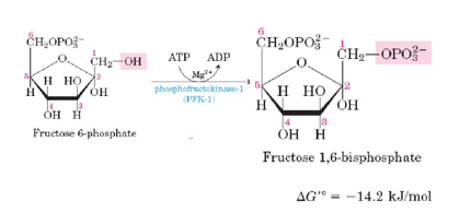 2- الإنزيمات المنظمة : Regulatory enzymes : هي تلك الإنزيمات التي تجري تفاعلاتها باتجاه واحد وتمتلك طاقة حرة قياسية (GοΔ) سالبة على سبيل المثال تحول إنزيم فوسفوفركتوكاينيز-1(1-Phosphofructokinase-1 (PFK في مسار الكلايكولسيس كما في المعادلة الآتية: