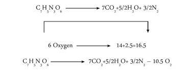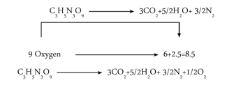 يلاحظ هنا أن ميزان الاكسجين سلبي حيث لم يتبق أكسجين حر من ضمن النواتج وذلك لأن كمية الاكسجين التي بدأ بها التفاعل قليلة ويحتاج التفاعل الى كمية إضافية من الاكسجين لإتمام التفاعل.