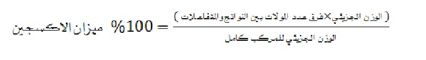 في المثالين السابقين وجد أن ميزان الاكسجين في NG يعطي قيمة إيجابية وهذا يعني إنه عند انفجار المادة وتحولها الى نواتج غازية فإن جزء من المتفجر يقوم بتوفير كمية من الاكسجين من المتفجر نفسه وهذا بدوره يساعد على زيادة الانفجار واستمرار الحريق أما في حاله TNT فوجد أن ميزان الاكسجين لديه سلبي وهذا يعني إنه يحتاج أكسجين من الهواء الجوي أو مصدر كيميائي للاوكسجين للقيام بعملية الانفجار ويمكن حساب النسبة المئوية لموازنة الاكسجين من العلاقة التالية :