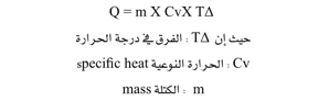 كما يمكن الحصول على كمية الحرارة بمعرفة كل من الكتلة m والحرارة النوعية cv عن طريق الاستفادة من المعادلات السابقة (1) .
