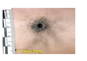 شكل (4-3) آ ثار مخلفات إطلاق ناري على جسم(إطلاق قريب)