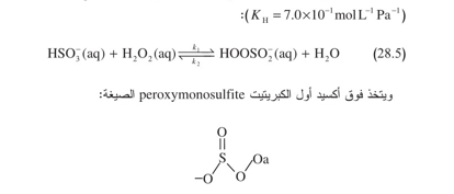 ويتضمن مسار آخر غير متجانس الأوزون مؤكسداً . في هذا الحالة يكون كل من كبريتيت الهدروجين وأيونات الكبريتيت قابلين للأكسدة: