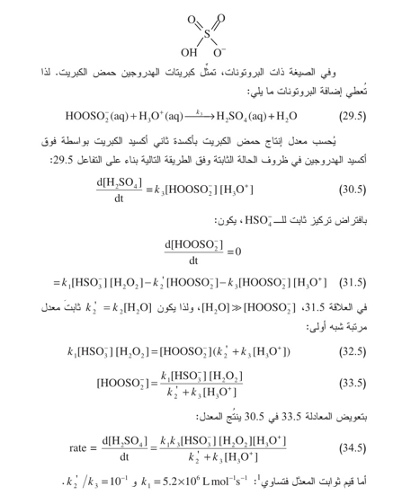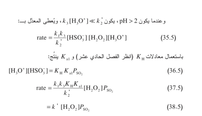 ضمن هذا المجال، تكون أكسدة ثاني أكسيد الكبريت بفوق أكسيد الهدروجين هي الآلية المهيمنة ويكون معدل التفاعل مستقلاً عن عامل الحموضة تقريباً. وتحت القيم 2 - pH ، يتناقص المعدل بسبب تزايد قيمة مقام المعادلة 34.5 وعند قيم 2 ~pH أعلى، يُصبح الكبريتيت SO جنس الكبريت المهيمن، ويتناقص معدل الأكسدة بواسطة هذا المؤكسد لأنه لا يتفاعل مع فوق أكسيد الهدروجين.