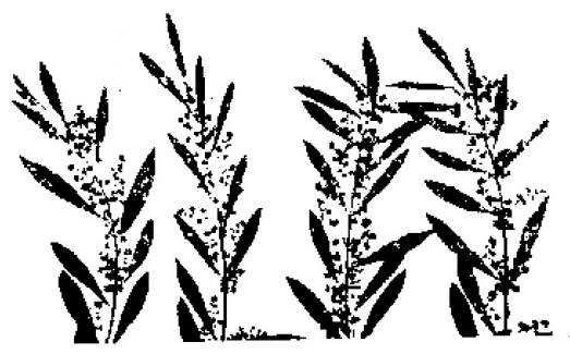 شكل يبين العناقيد الزهرية قبل وأثناء الازهار، متوضعة في أباط الاوراق على خشب السنة الماضية