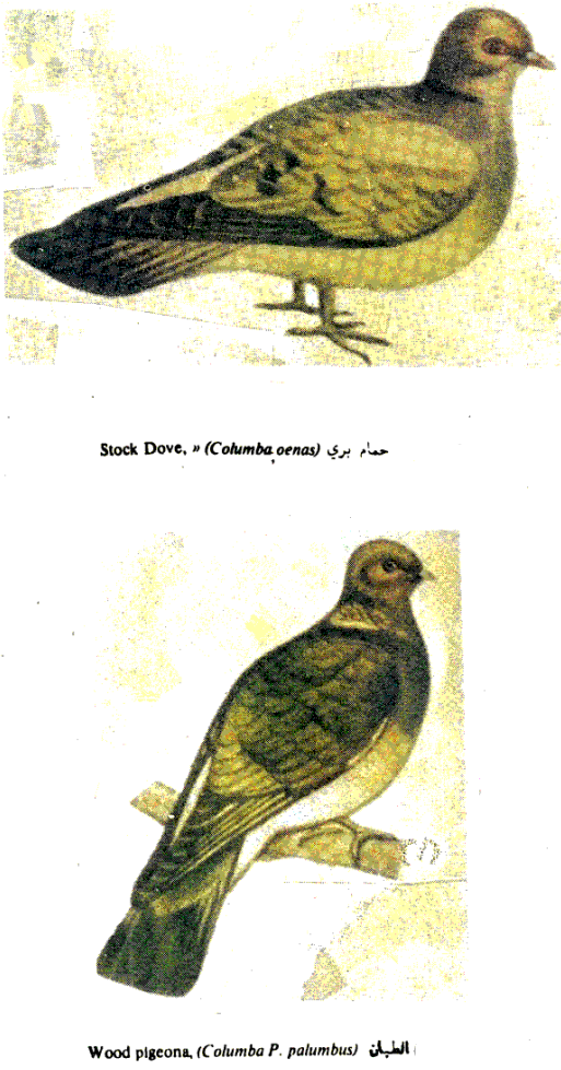 الخضيري ، الوز، القطا ، الحمام الغوراني ، الحمام الطبان ، الفاختة ، الزرزور ، أبو الخضير العصفور الدوري ، الزاغ والغراب الا بقع.