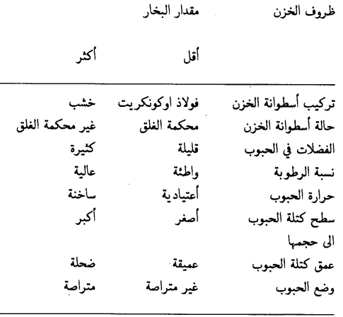 وإذا قدر المسؤول عن عملية التبخير الجرعة على أساس الحجم أو الوزن وفق توصيات المنتج أو الجهات الرسمية فعليه أن يعتبر أيضاً العوامل التي تؤثر على كفاءة التبخير لكي يكيف مقدار الجرعة لها ويمكن اعتبار ظروف الخزن في تكييف الجرعة الموصى بها كما هو مبين في الجدول التالي.
